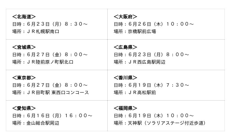 自動車税制の改革を求める自動車ユーザーのメッセージ(チラシ 添付参照)を配布し、実際に自動車の税金に対する意見・要望を「生の声」として集めて、最終的に国会議員や自治体トップへお届けしていきます。【6月活動予定】