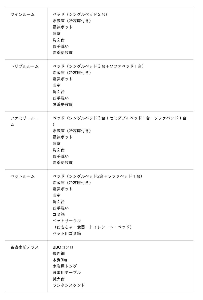 また、4つの異なるタイプ(ツイン/トリプル/ファミリー/ペット対応)からお選びいただけますので、カップル、ご家族、ご友人、愛犬連れのお客様まで、幅広いシーンでご利用いただけます。