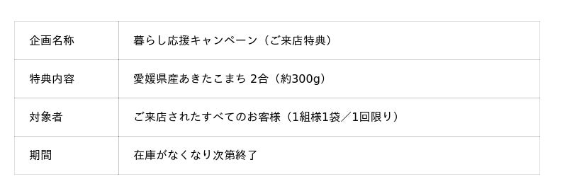 ご来店特典「暮らし応援・お米プレゼントキャンペーン」の概要