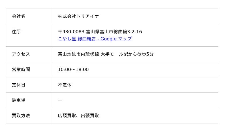 アピタ富山店も星4.9と高評価で、口コミ数も1,141件と非常に評判が抜群です。こちらの店舗は店頭買取、出張買取に対応しており、査定料は無料です。店舗はアピタ富山店1階にあり、ホテルのロビーのような店構えが特徴です。