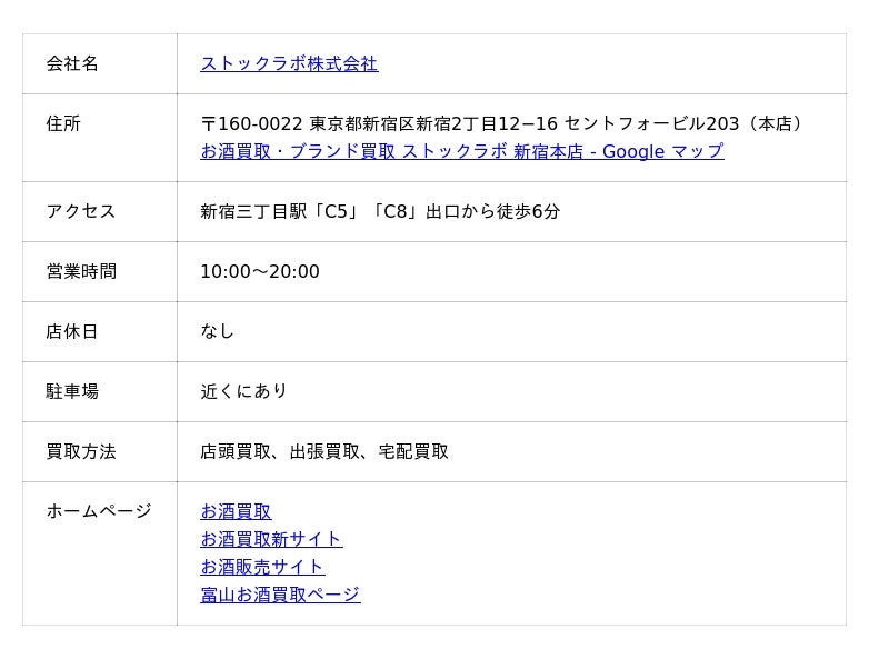 富山でおすすめのお酒買取業者は以下の通りです。