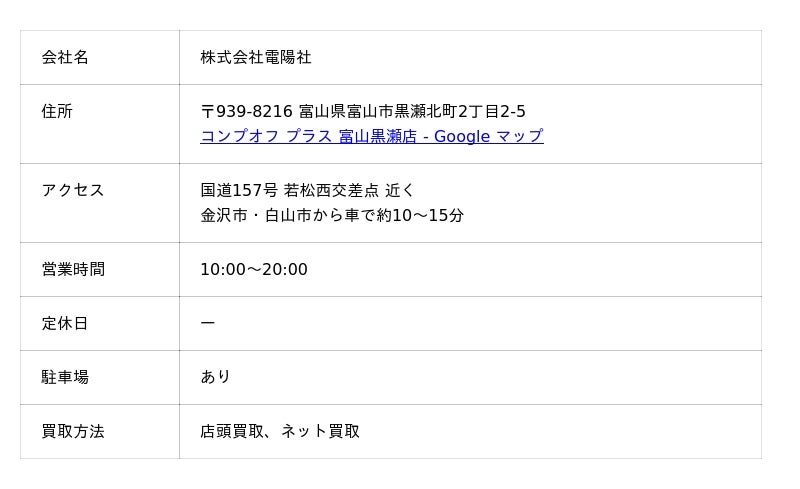 コンプオフ プラス 富山黒瀬店の口コミ・評判