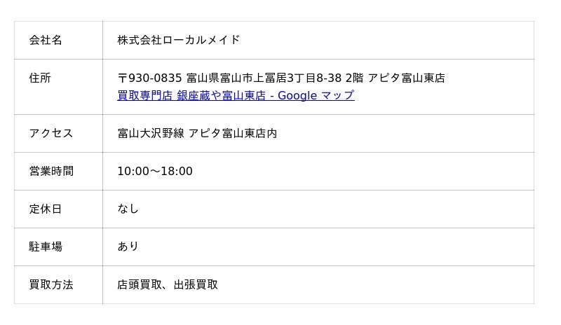 買取専門店 銀座蔵や富山東店の口コミ・評判