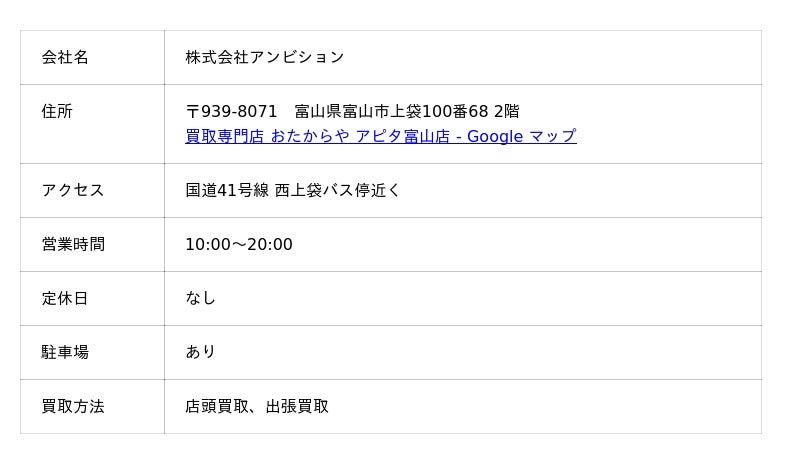 買取専門店 おたからや アピタ富山店の口コミ・評判