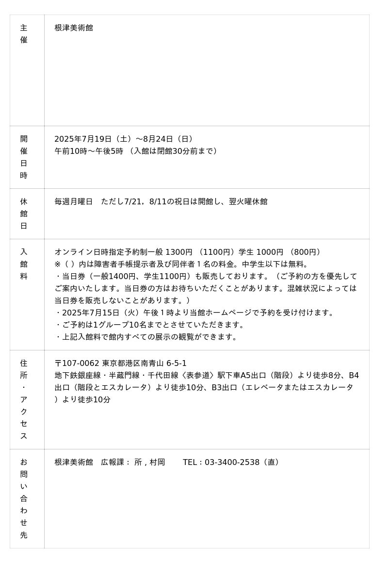 ※いずれの催事も、7月15日(火)午後1時より、当館ホームページ「イベント情報」の申込フォームからお申込みください。参加は無料ですが、美術館入館料が必要です。