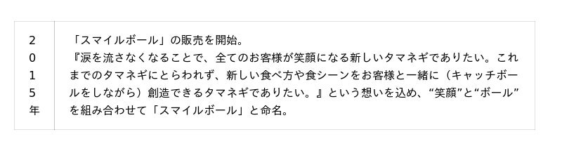 世界最初の「涙のでない、⾟みのないタマネギ『スマイルボール』」の生産に2015年から取り組んでいます。