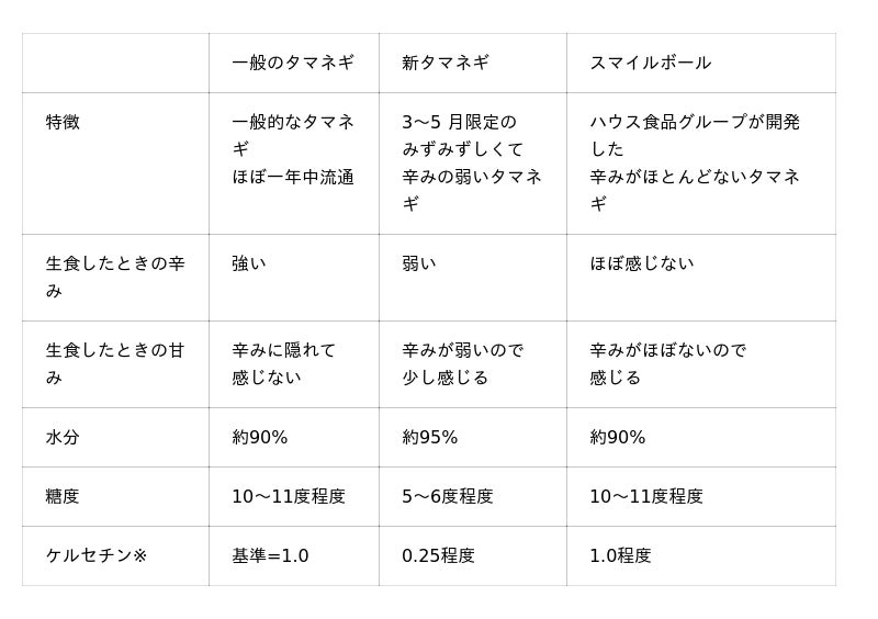「スマイルボール」は⾟み成分の発生に関わる酵素が少なく⾟みをほとんど感じないので、タマネギの持っている⽢みをそのまま実感することができます。また、生で食べる時に水にさらす必要がない「スマイルボール」は、調理の手間が省けるうえ、栄養成分の流失を抑えることができます。切ったとき目にしみることがなくニオイも手に付きづらいので、調理のハードルも低くなります。