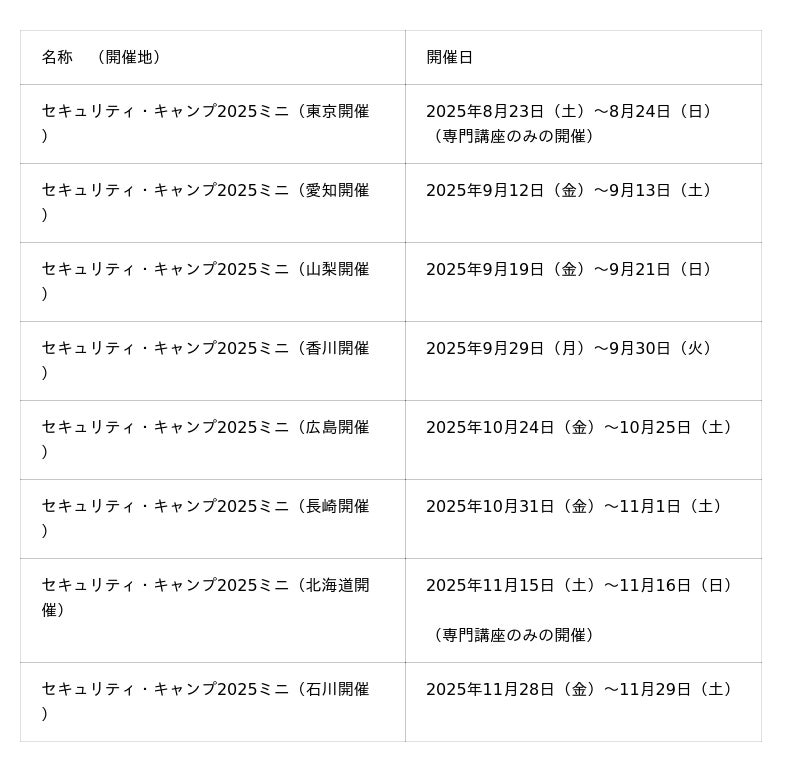 セキュリティ・キャンプ2025ミニ 各地で開催【参加費無料】