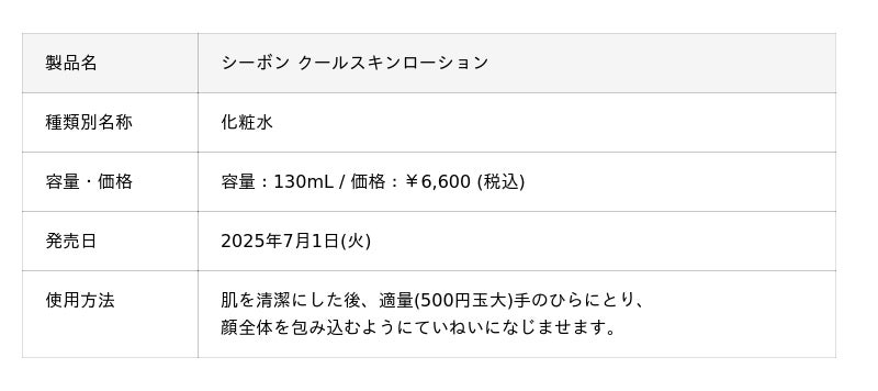7/1(火) 数量限定発売 涼しい顔してエイジングケア*清涼感まとう夏肌へ「シーボン クールスキンシリーズ」
