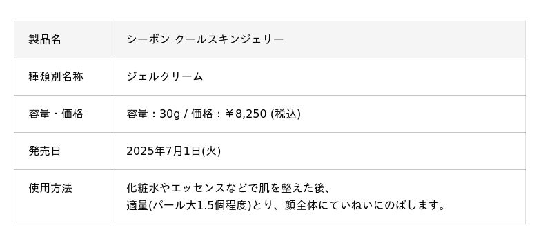 独自のビューティ・プログラム「ホームケア+サロンケア」を展開する株式会社シーボン(本社:東京都港区、代表取締役社長:崎山一弘、証券コード:4926)は、肌温度を素早くクールに整え、キュッと引き締まったみずみずしい透明感*のある肌へ導く「シーボン クールスキンシリーズ」を2025年7月1日(火)に数量限定で発売いたします。