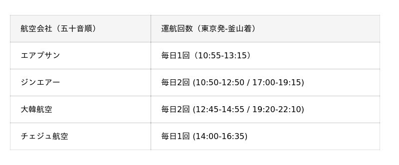 〇東京(成田)―釜山(金海)直行便について(2025年6月現在)