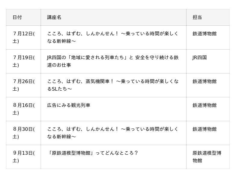 毎週土曜日に実施している「てっぱく大学」にて、会期中観光列車にまつわる講演を