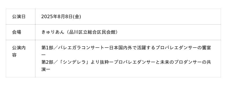 公演詳細「バレエアンサンブルガラ2025・東京公演」