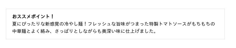 1. 特製トマトソースと中華麺が相性抜群!新感覚の『トマト冷やし麺』 2種が新登場。