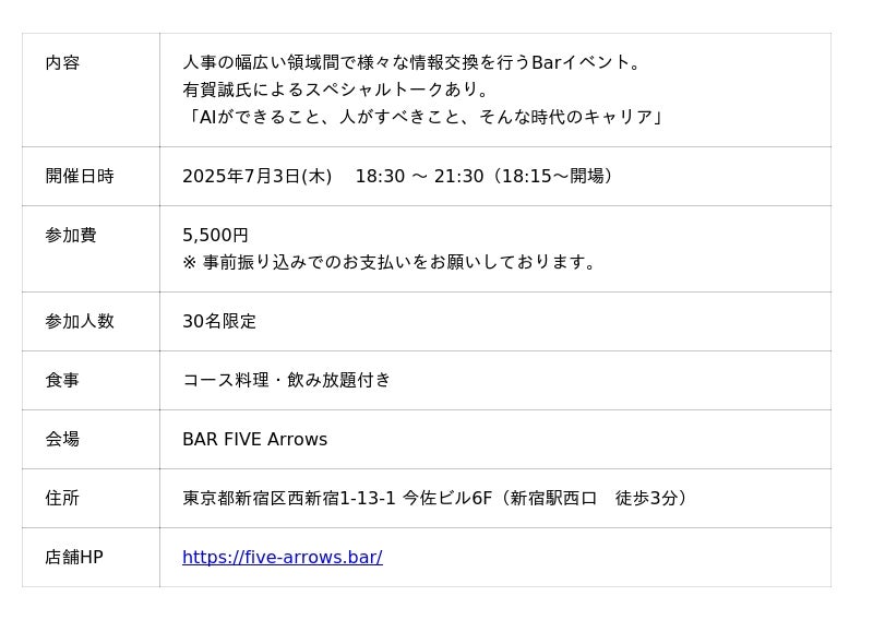 人事・HR領域の第一線で活躍するプロフェッショナルたちと語らうBarイベント
