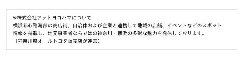 株式会社アットヨコハマ(本社:横浜市神奈川区栄町7-1/代表取締役:上野健彦・宮原漢二)※は