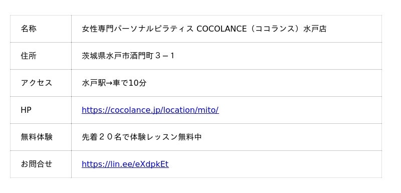【水戸駅 車で10分】女性専門パーソナルピラティス COCOLANCE(ココランス)水戸店が2025年7月1日にオープン