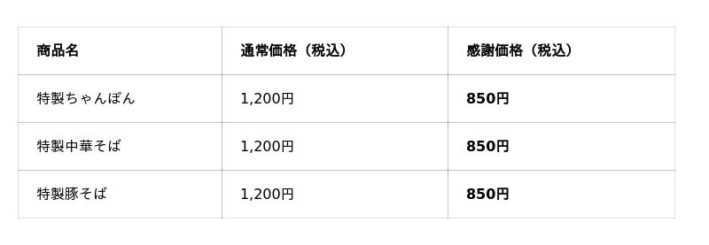 🍜 内容:人気の「特製3品」を感謝価格でご提供(店内飲食限定)