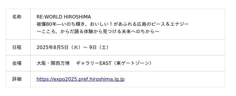 2025年大阪・関西万博に広島県ブース「RE:WORLD HIROSHIMA」出展、被爆からの復興と魅力あふれる広島の姿を伝える