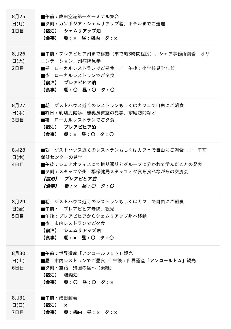 認定NPO法人シェアは、2025年8月25日(月)~31日(日)の5泊7日間、「不思議の王国」と称されるカンボジアの母子保健の現場を訪問し、国際協力について学ぶスタディーツアーを開催します。