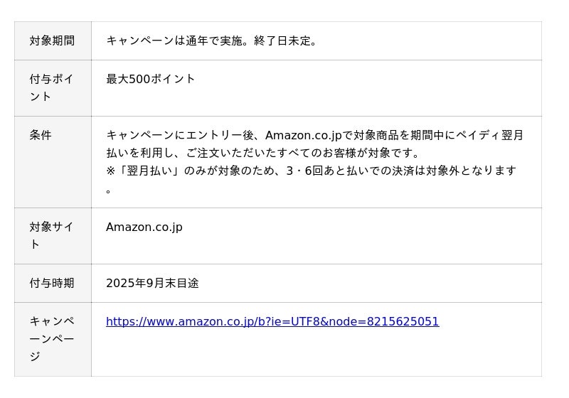 各キャンペーンの詳細は、おすすめのお支払い方法をまとめたこちらの特設ページ( https://www.amazon.co.jp/PD25Payments )をご覧ください。