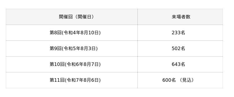 令和7年8月6日(水)13:00~16:00 (雨天決行、荒天の場合は中止)会場