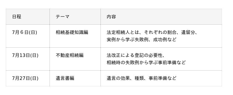 【参加費無料・要予約】2025年7月6日(日)、7月13日(日)、7月27日(日)全3回開催