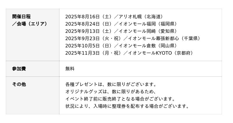 ユーザーの皆様に最高の体験をお届けするオフラインイベント「ガンホーツアー2025」を、2025年8月16日(土)より開催いたします。今年はアリオ札幌(北海道札幌市)を皮切りに、全国6都市を巡ります。