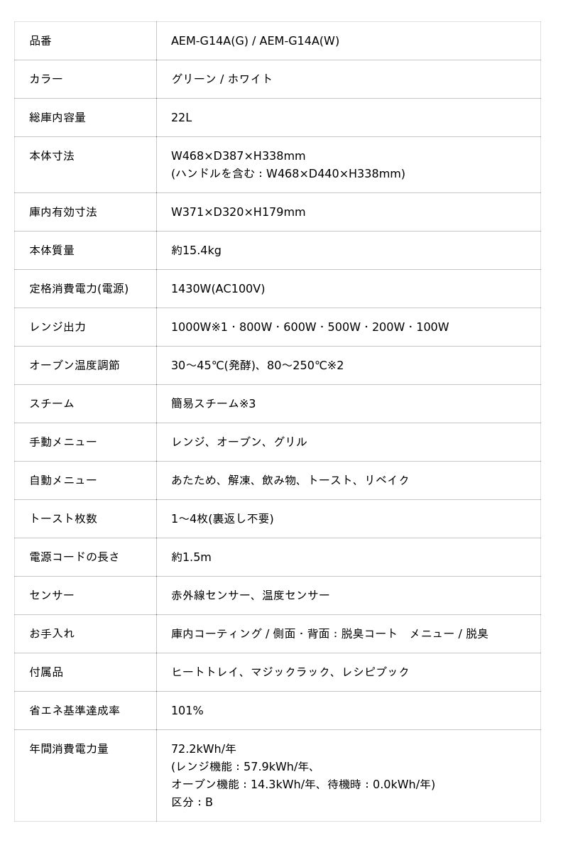 『アラジン グラファイトオーブンレンジ』 カラー:グリーン・ホワイト
