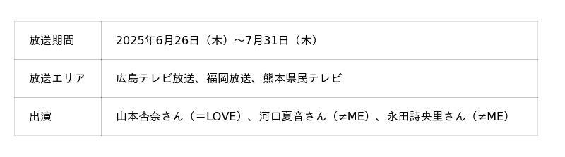 本企画は広島県に本社を置き、中四国・九州地方に総合スーパー、ショッピングセンター「ゆめタウン」やスーパーマーケット「ゆめマート」を運営するイズミという、地域で多大な存在感を発揮している流通業と、読売テレビ制作の人気番組「秘密のケンミンSHOW極」によるエリア限定のコラボ企画となります。エリア限定CMは、広島県出身の女性アイドル、=LOVEの山本杏奈さん、≠MEの河口夏音さん、永田詩央里さんの3名に出演いただき、可愛らしい広島弁で盛り上げていただきました。