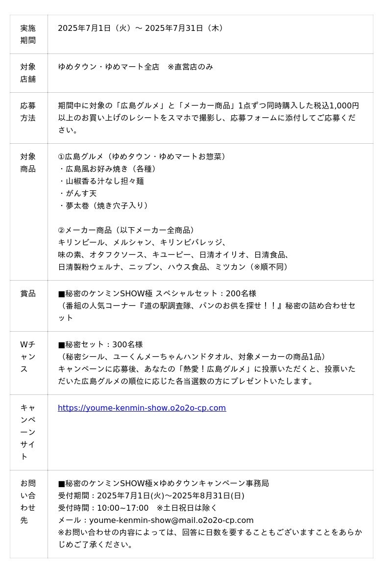■【ゆめタウン×秘密のケンミンSHOW極『ケンミン熱愛!グルメ総選挙』】企画概要