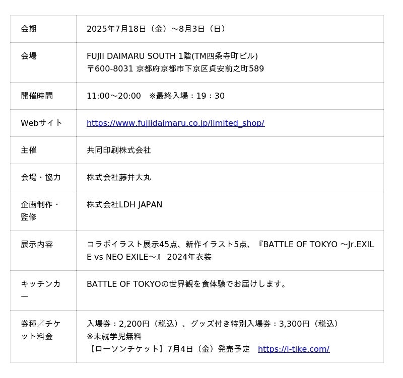 【BATTLE OF TOKYO「超東京拡張展」京都 藤井大丸 開催概要】