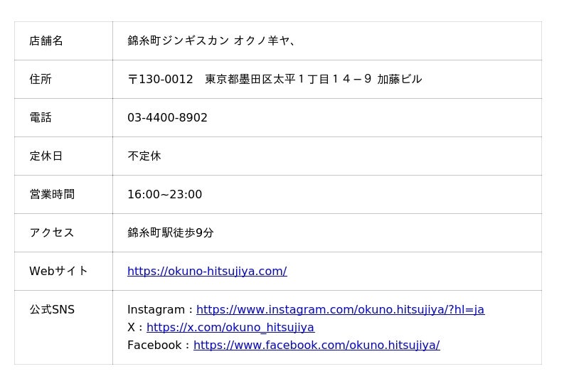 ■「錦糸町ジンギスカン オクノ羊ヤ、」とは