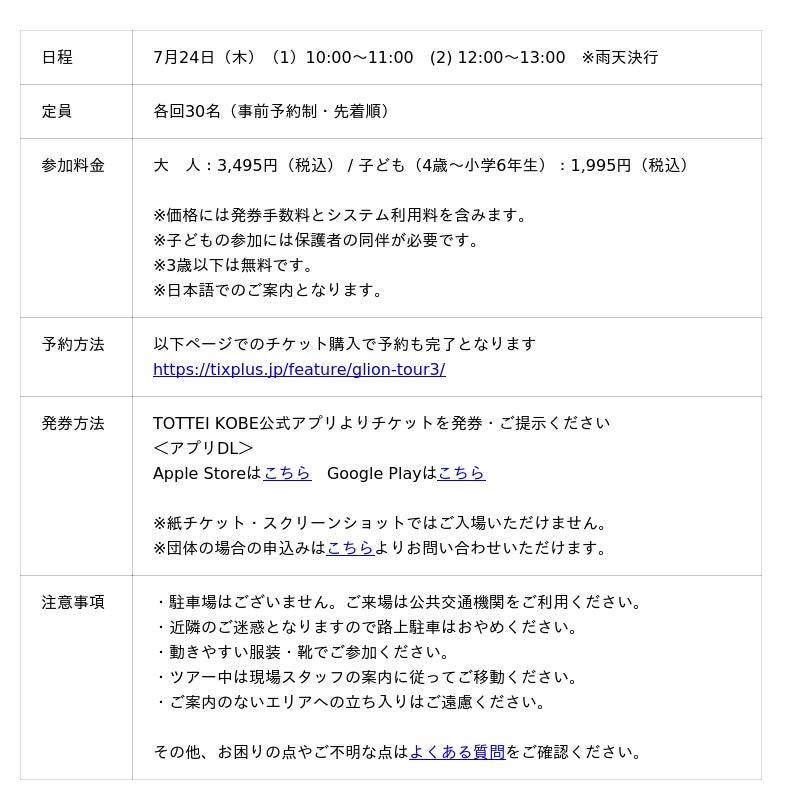 GLION ARENA KOBE見学ツアー 開催概要