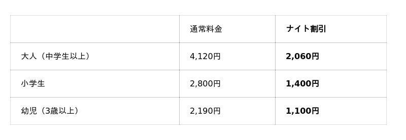 <期 間>2025年7月19日(土)から8月31日(日)まで<対 象>18時以降に当日の入場券をご購入の方