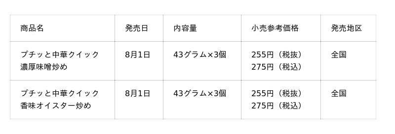 エバラ食品工業株式会社(本社:神奈川県横浜市、代表取締役社長:森村 剛士)は、2025年8月1日(金)より、好調の「プチッと中華」シリーズからサブブランドである「プチッと中華クイック」を新たに立ち上げ、野菜ひとつで手軽に炒め物が作れる「プチッと中華クイック 濃厚味噌炒め」「同 香味オイスター炒め」を全国で発売いたします。