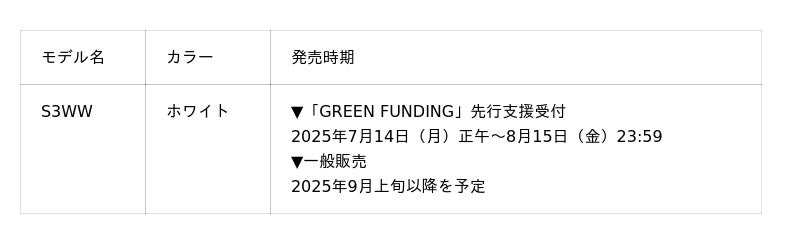 LGエレクトロニクス・ジャパン株式会社(代表取締役:孫 成周(ソン・ソンジュウ) 本社:東京都中央区)は、衣類ケア家電「LG Styler」の新モデルとして、「S3WW(ホワイト)」の発売を決定し、2025年7月14日(月)正午から2025年8月15日(金)23:59まで、CCC(TSUTAYA)グループの株式会社ワンモアが運営するクラウドファンディングサイト「GREEN FUNDING」にて先行支援の受付を開始します。