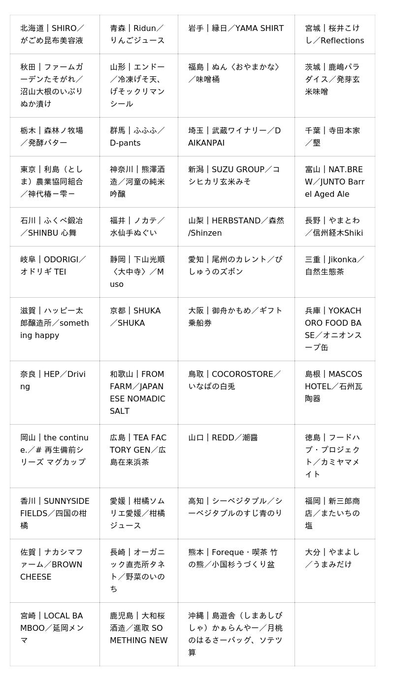 宮城|桜井こけし、栃木|森林ノ牧場、群馬|ふふふ、岡山|the continue. 、沖縄|島遊舎かぁらんやー