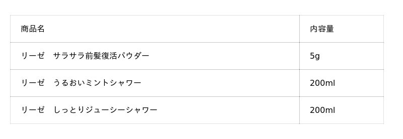 応募いただいた方の中から抽選で合計100名に、今回数量限定発売の『リーゼ サラサラ前髪復活パウダー』とオリジナルのポーチ(商品を入れられるサイズで、 持ち運びできるストラップ付き)をプレゼントします。