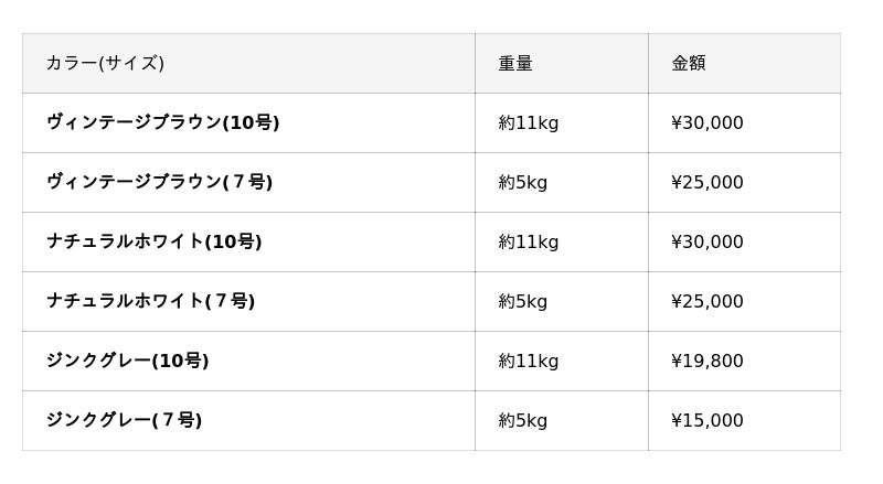 (左)ヴィンテージブラウン (真ん中)ナチュラルホワイト (右)ジンクグレー