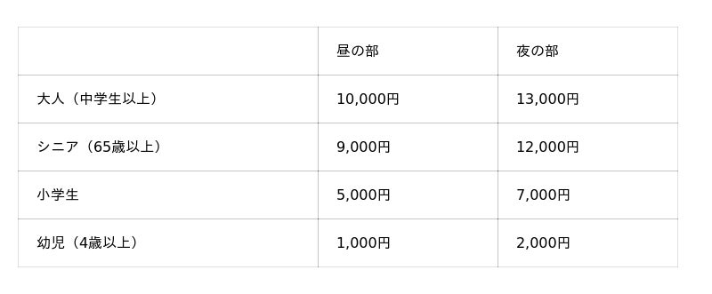 [昼の部] 12:00~14:30 [夜の部] 17:30~20:00 (※受付は30分前)