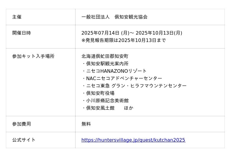公式HP:(仮)https://huntersvillage.jp/quest/kutchan2025