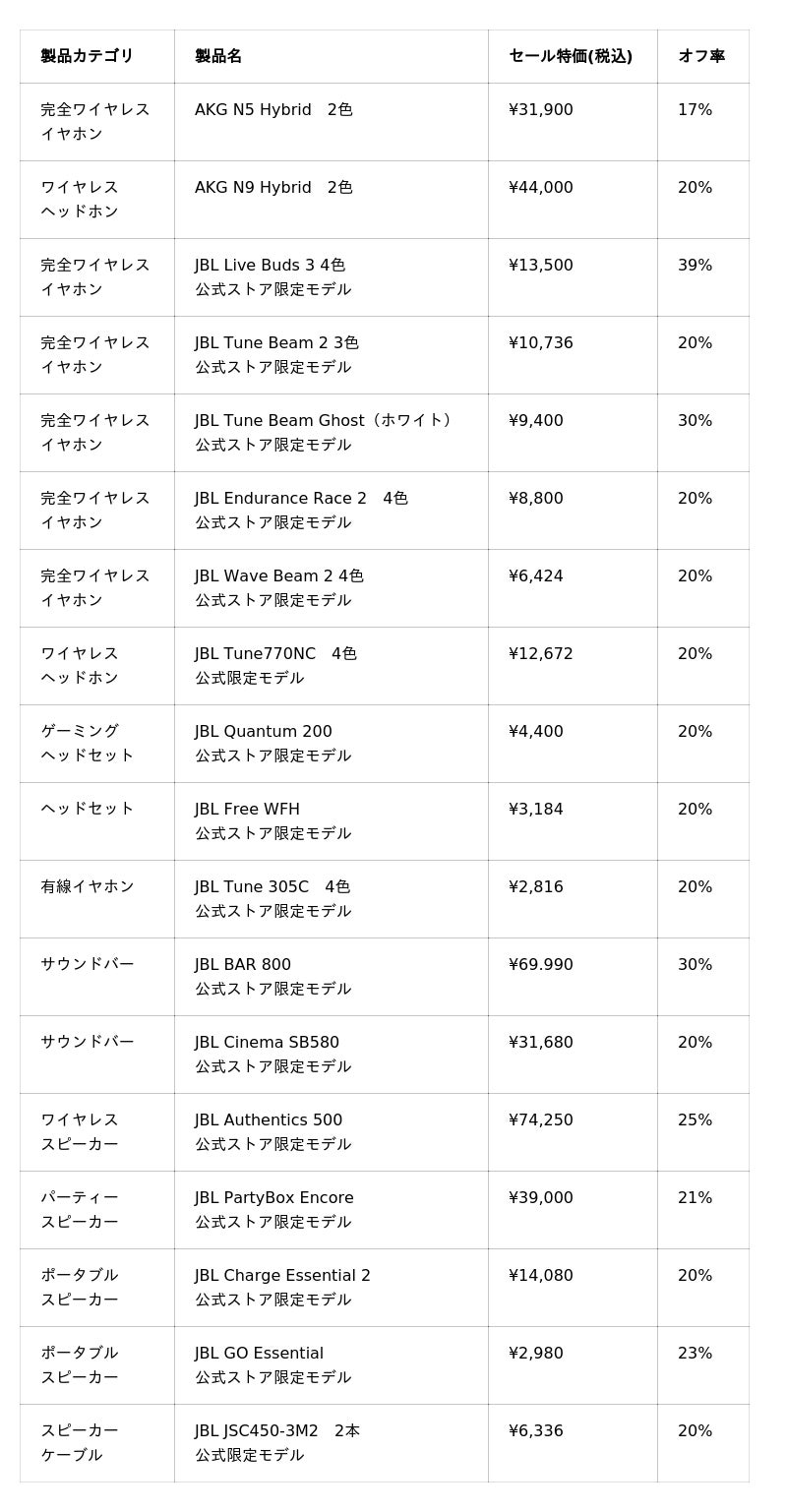 ※オフ率は、JBL公式サイトにおける2025年7月8日時点の販売価格を基準に当社が算出した数値です。