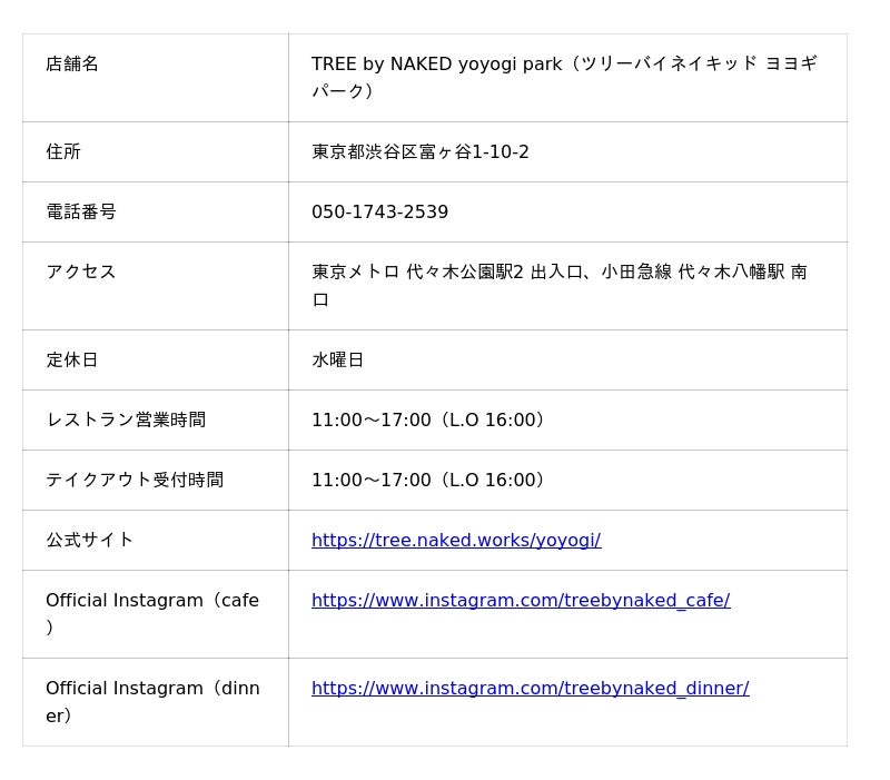 『TREE by NAKED yoyogi park』店舗情報