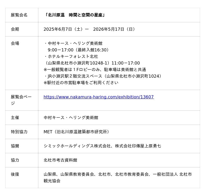 中村キース・ヘリング美術館(山梨県・小淵沢)では、当館を設計した建築家・北川原温による美術館初個展「北川原温 時間と空間の星座」を開催中です。展示では、スケッチや模型、北川原氏の言葉を通して、建築の構想からかたちになるまでの創造の軌跡をたどります。