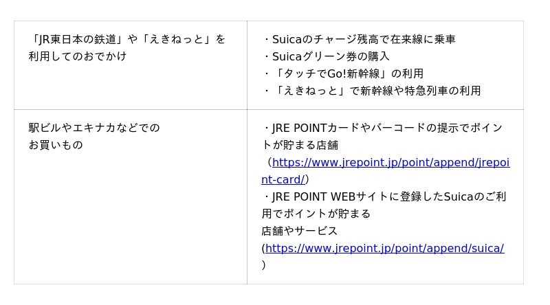 ※JRE POINT WEBサイトに登録したモバイルSuica・Suicaでのご利用や、JRE POINTと連携した「えきねっと」のご利用が対象です。