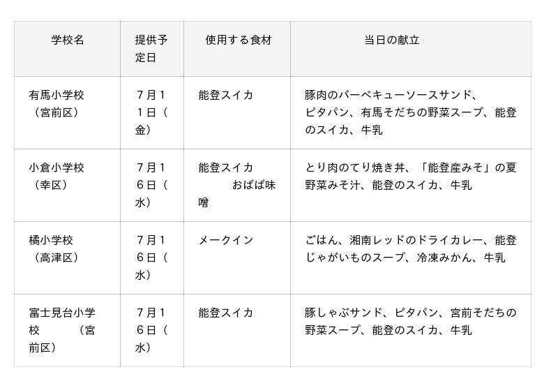 7月11日(金)から順次、能登スイカやおばば味噌などを使った給食が、市内小学校で提供されます。