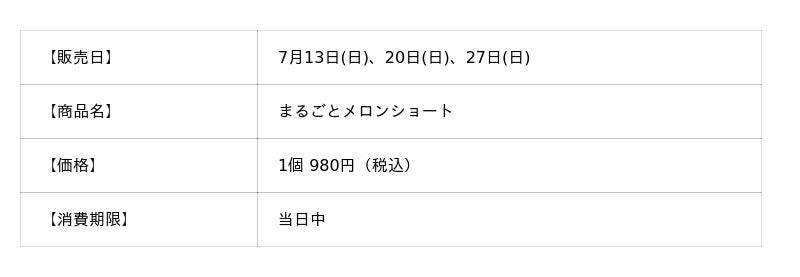 ■「まるごとメロンショート」販売について