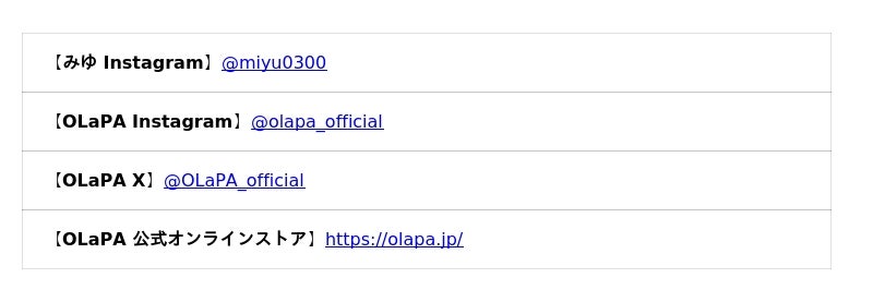 OLaPAの公式SNSのフォロー画面をスタッフに提示いただくと、OLaPA公式サイトで利用できる限定クーポンをプレゼント!さらに、クーポンご利用のお客様だけの限定プレゼントも...
