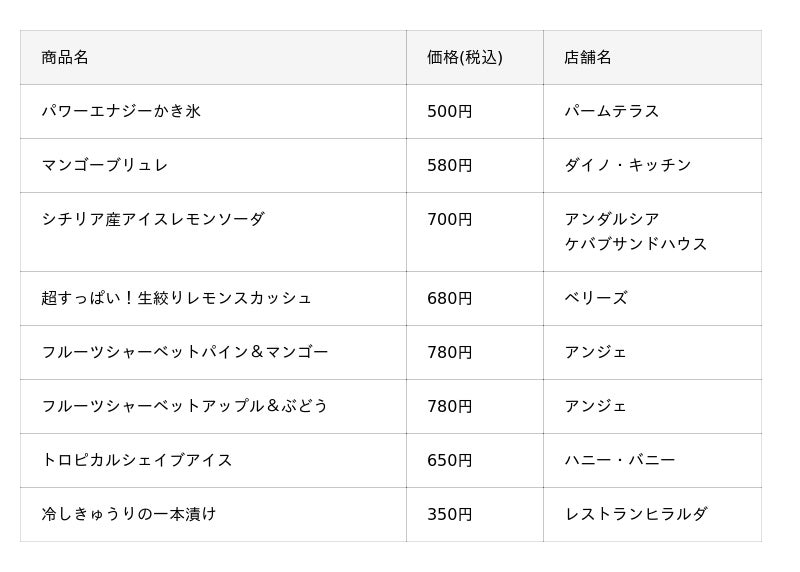 2025年7月19日(土)~8月31日(日)の期間中、園内の飲食店のうち8店舗でこの夏限定のひんやり爽快メニューを全8品販売します。